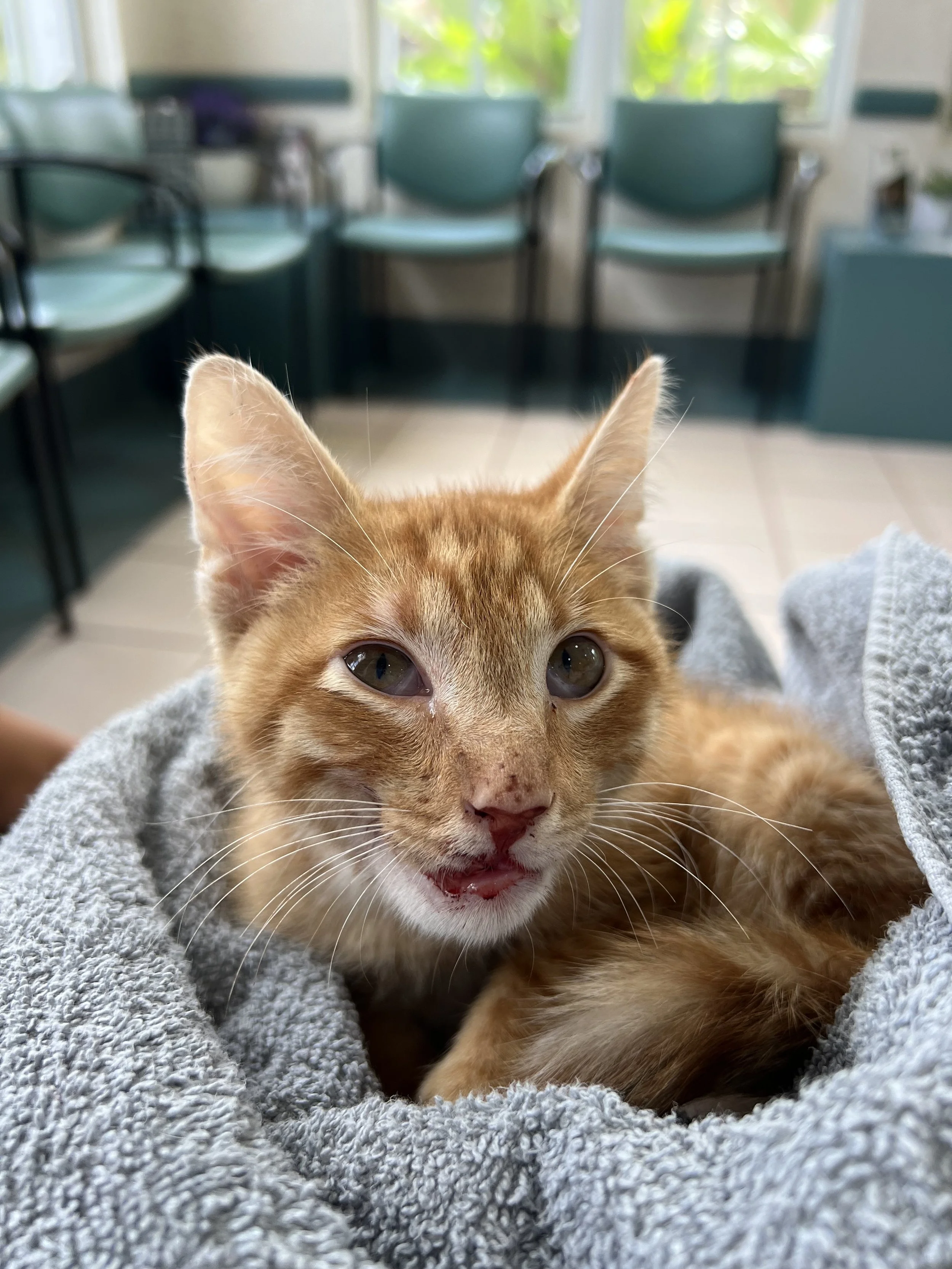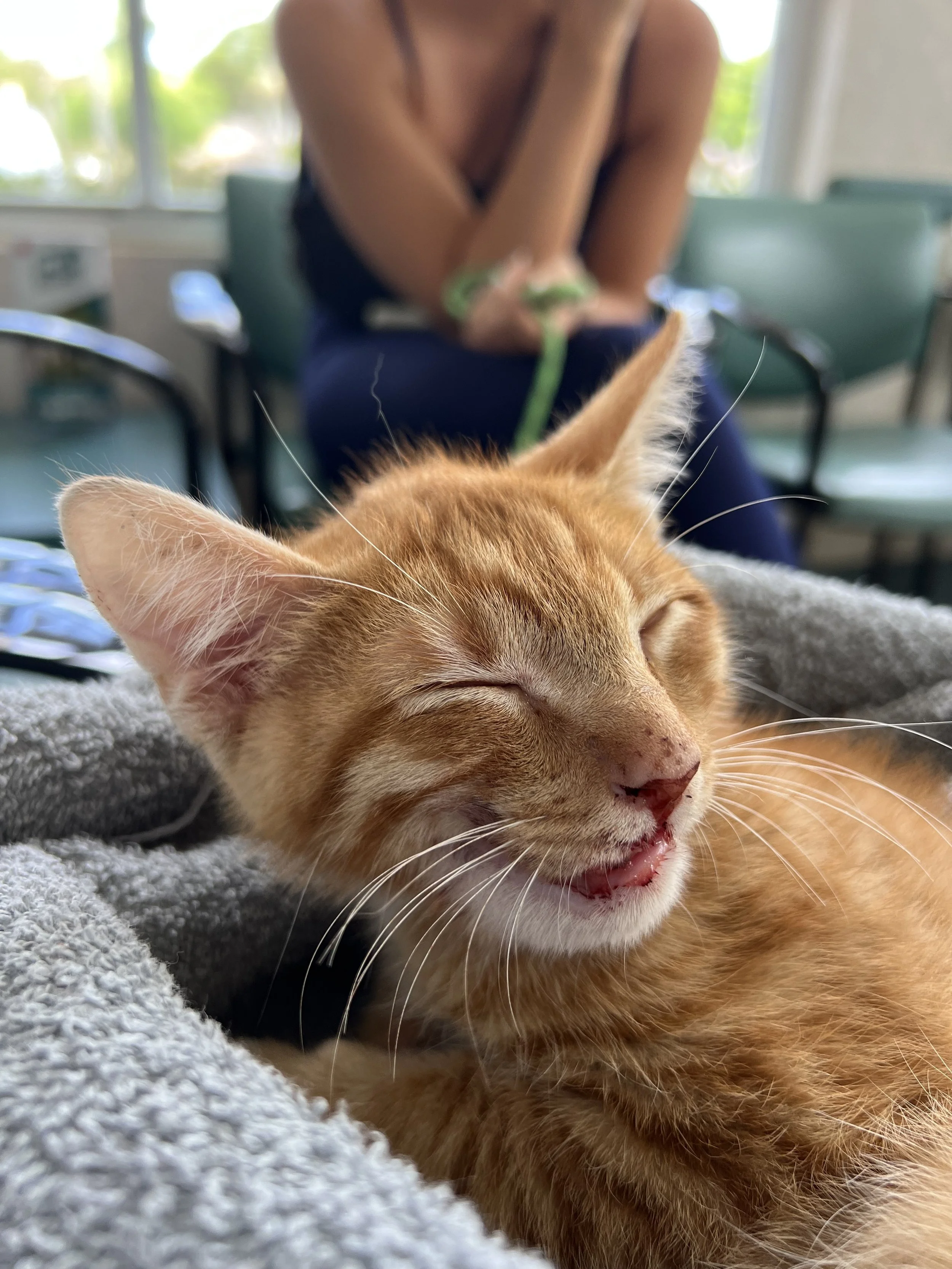 But fate stepped in. Sunshine Animal Rescue just happened to be at the vet that day—dropping off another critical orange kitten, because I guess orange cats like me are magnetically drawn to chaos—and the vet asked them if they could help me. And they said yes.